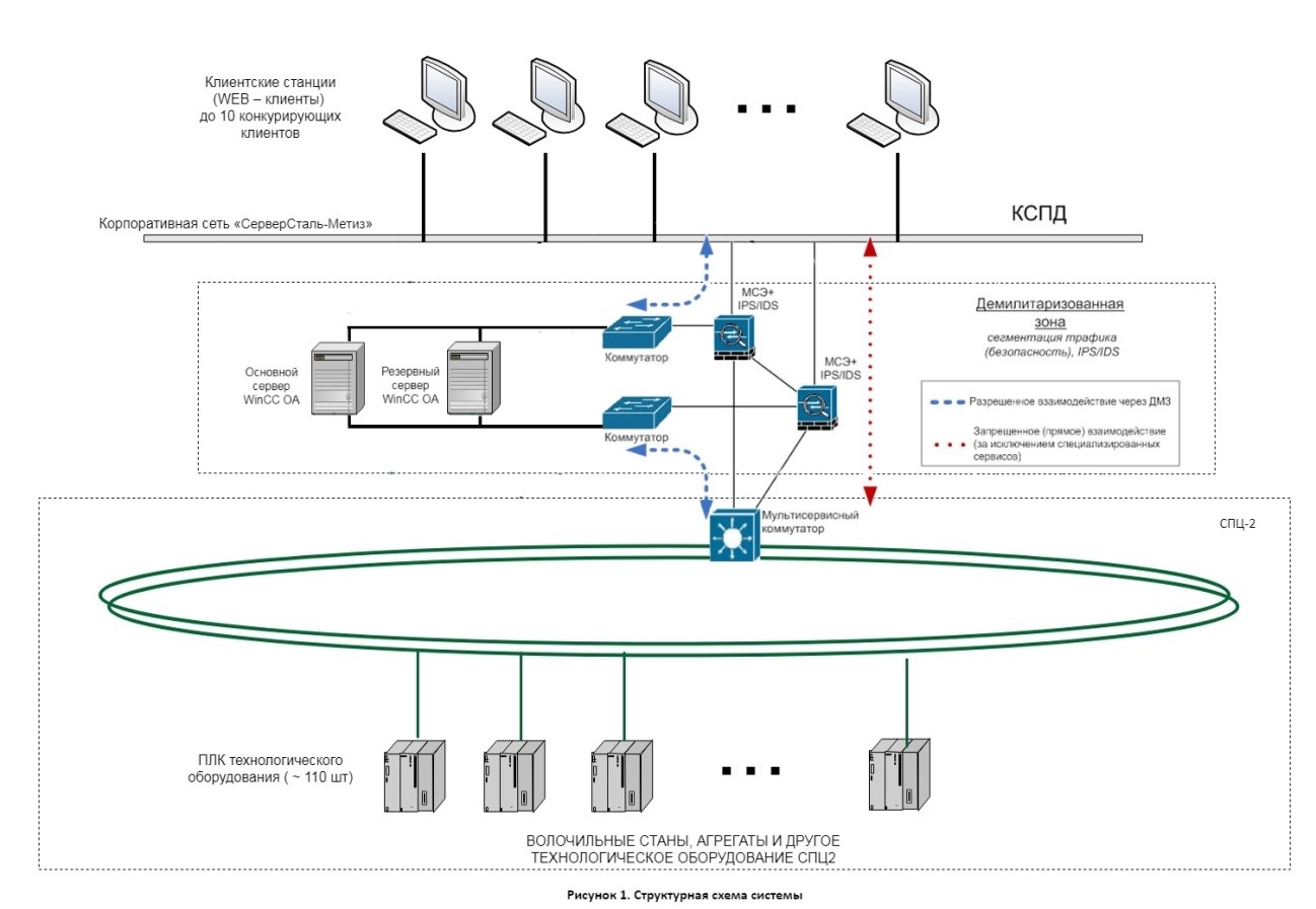 · подсистема управления АСУ ТП «Уровень 1»: передача на Уровень 1 технологических уставок производства, фиксация и двухсторонний обмен событиями работы печи;