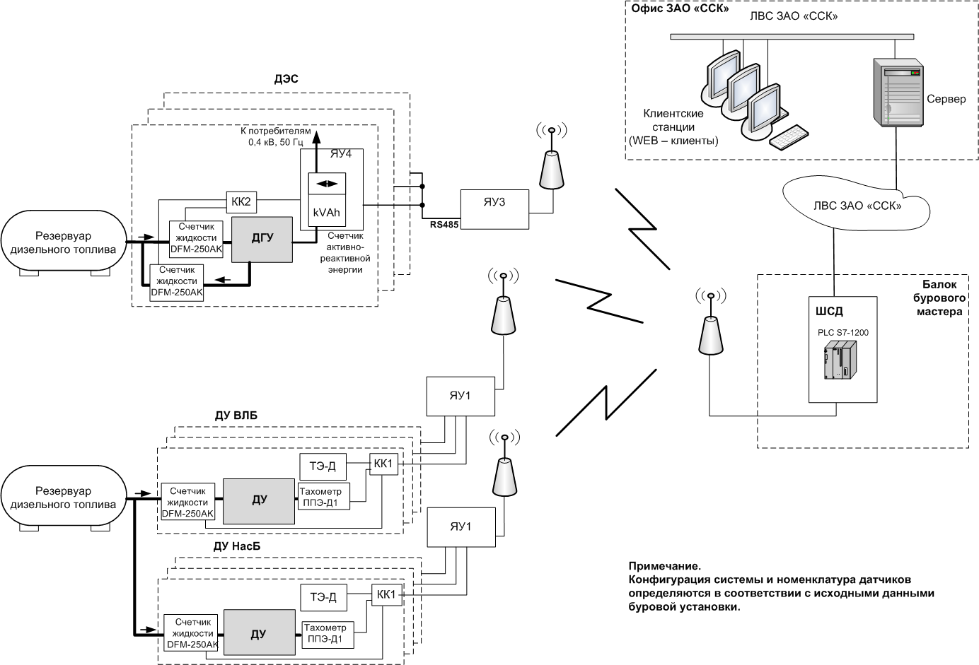 Основные виды технологического оборудования, подключенные к системе: