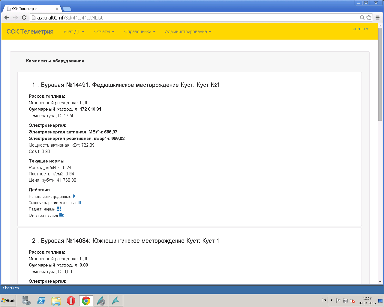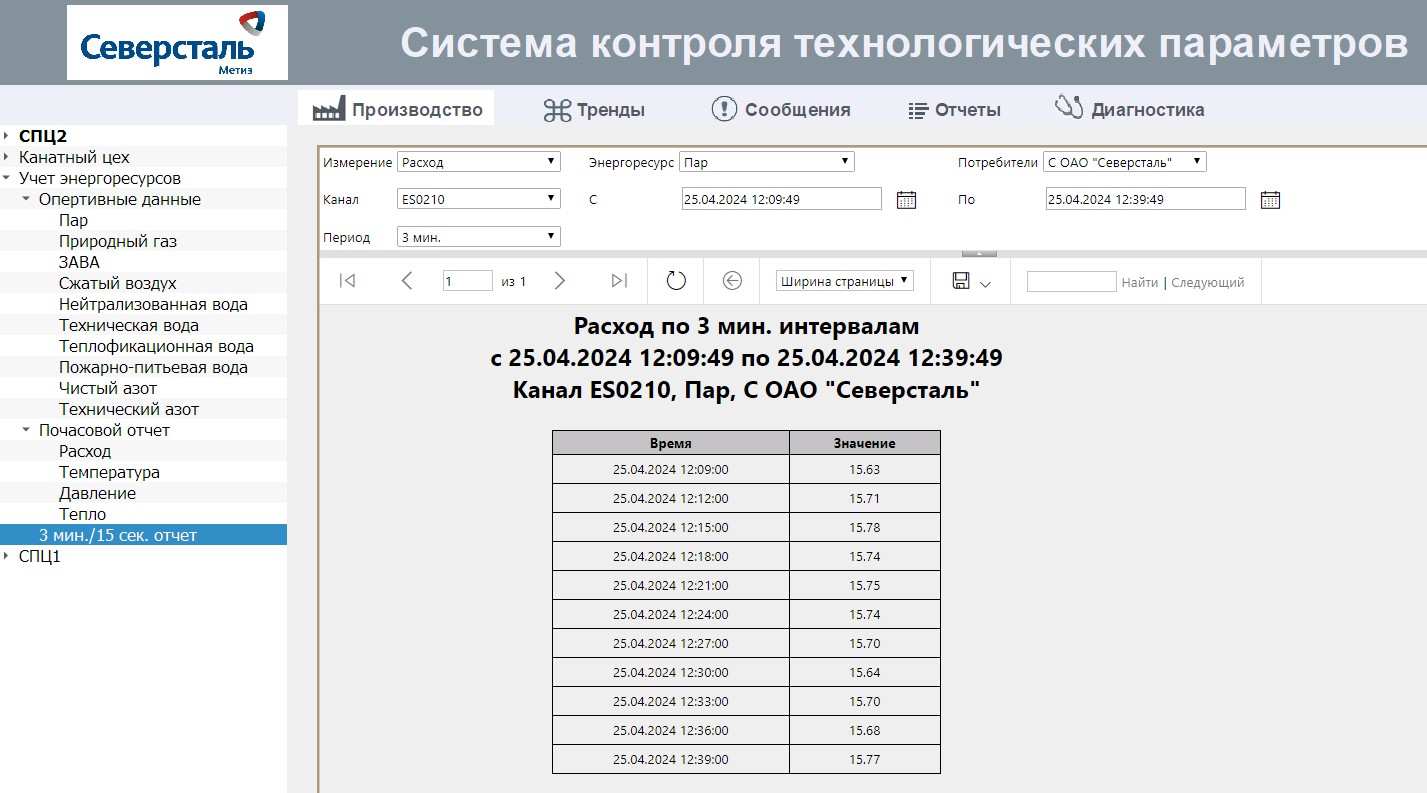- таблицы мгновенных значений расхода ресурса (оперативные данные мгновенные значения 3-х минутные);