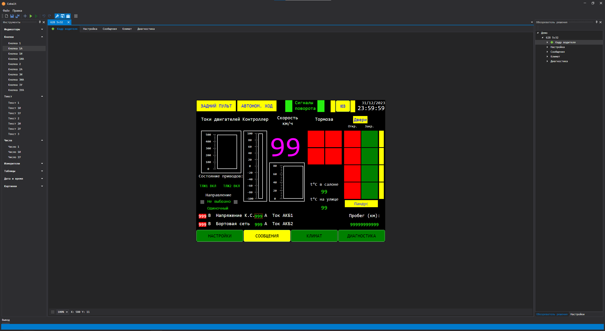 Исходным требованием является разработка системы создания визуализации и управления (SCADA) панельного компьютера, устанавливаемого в кабину водителя трамвая.