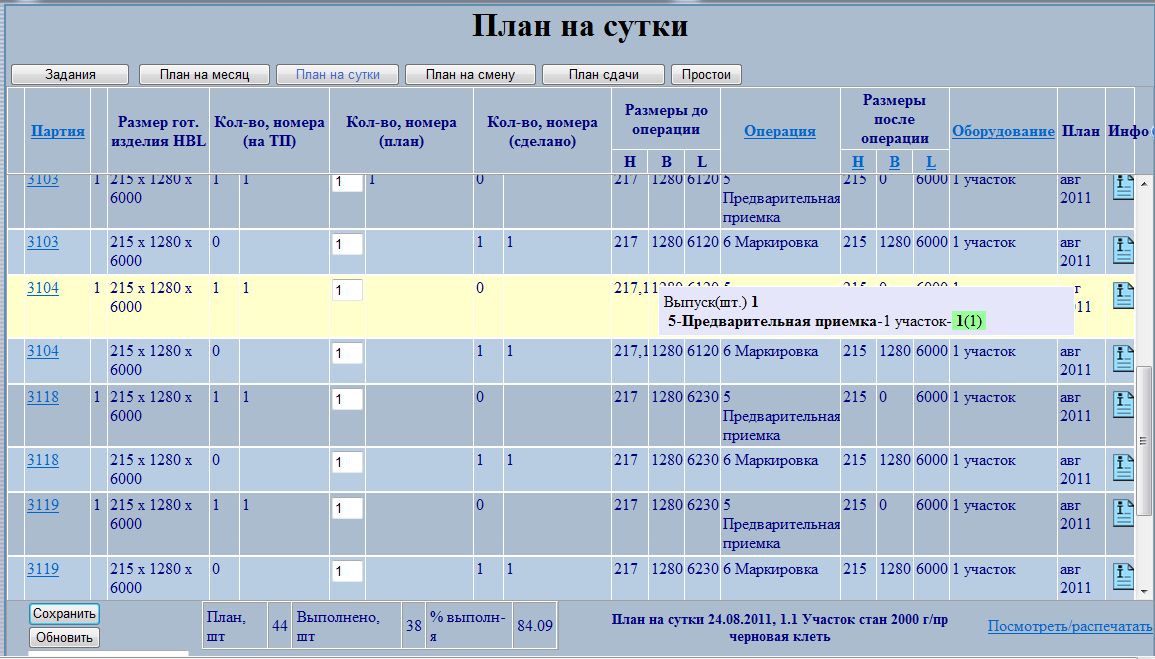 · автоматическое формирование паспорта садки алюминиевых плит, обработанных на агрегате;
