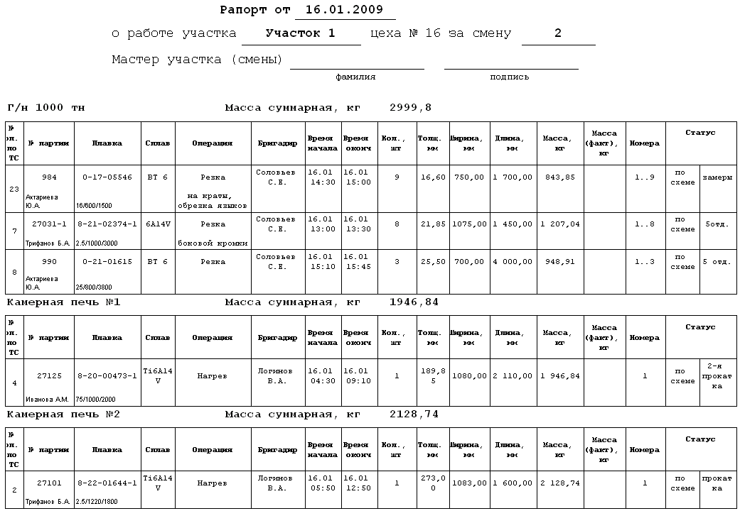 АСУП «Титан 16» охватывает все производственные участки и агрегаты цеха 16.