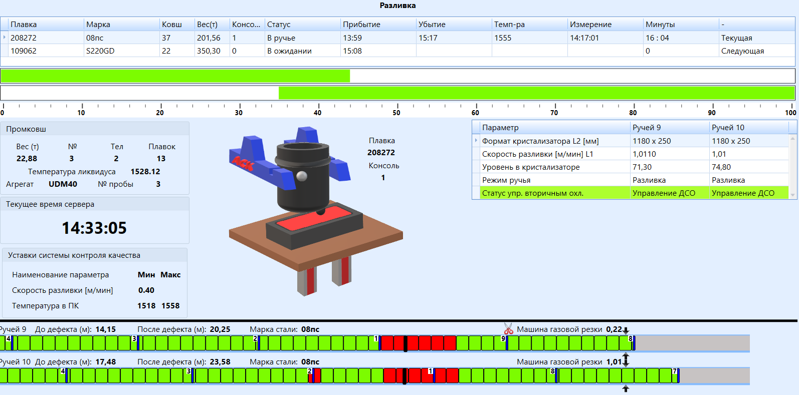Система решает задачи автоматизированного управления технологическим оборудованием и технологическим процессом разливки.