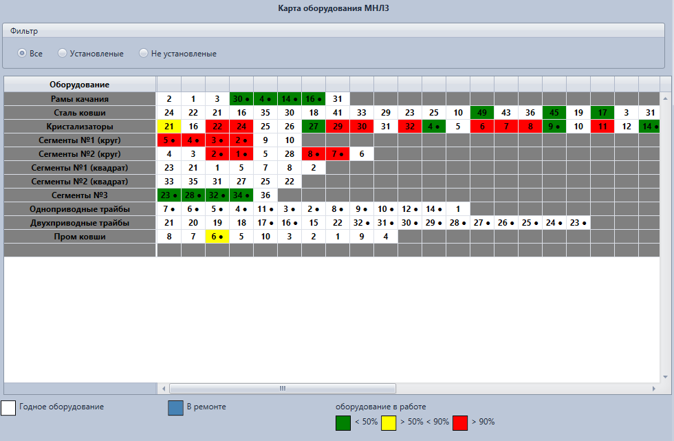 Система позволяет оперативно диагностировать выход оборудования из строя для минимизации простоев на восстановления его работоспособности.