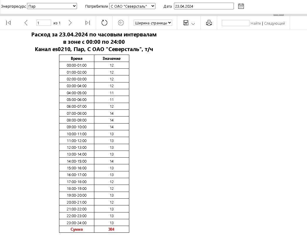 - таблицы и отчеты с расчетом баланса расхода энергоресурса (по каждому отдельно).