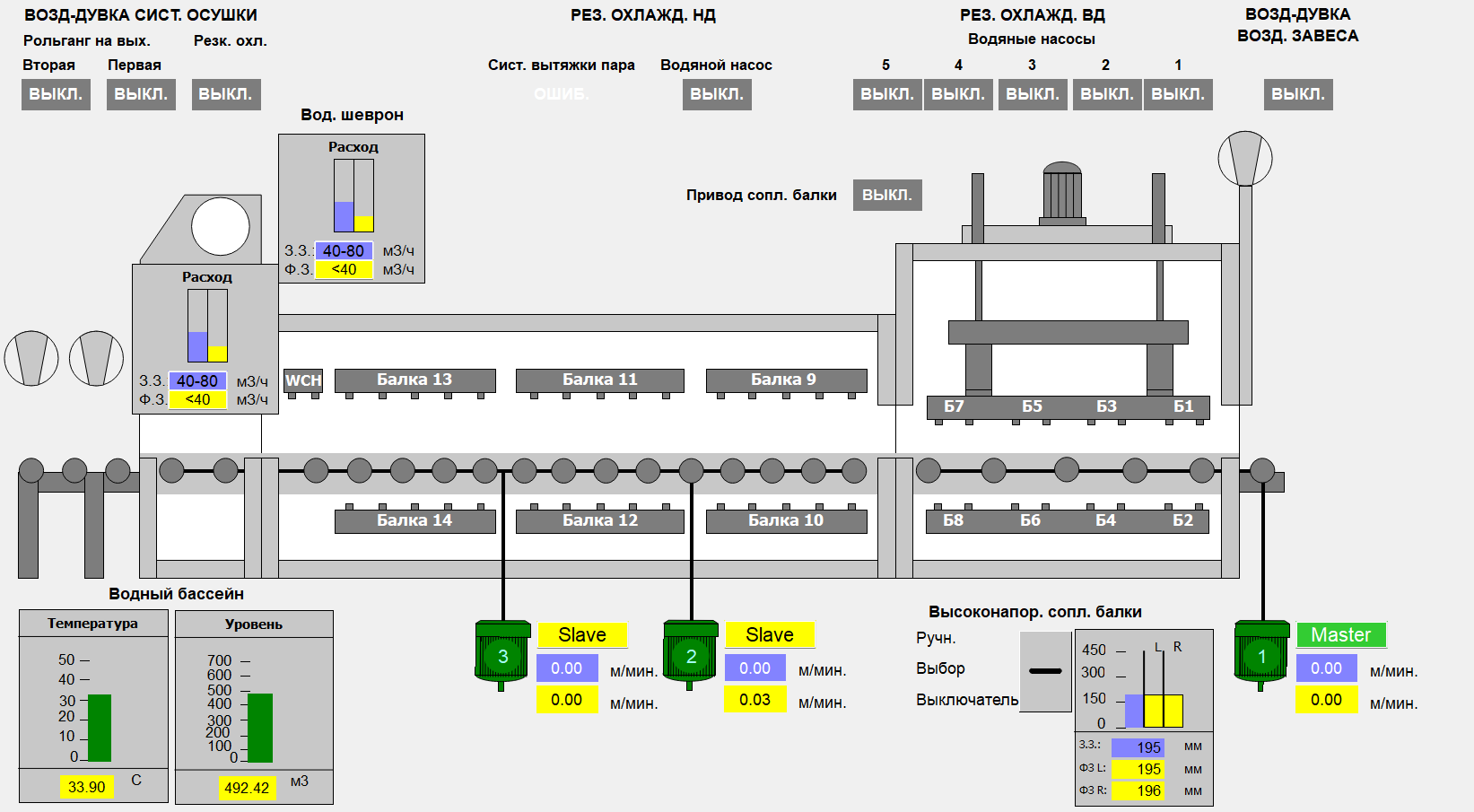 В системе реализована диагностика состояния оборудования цеха и самодиагностика системы.