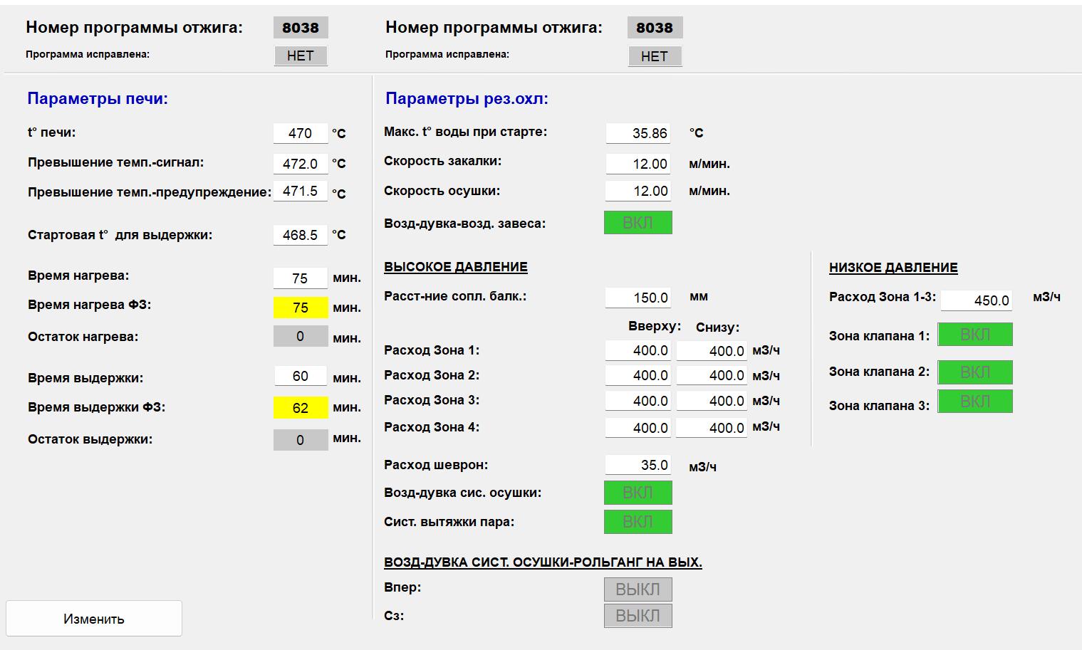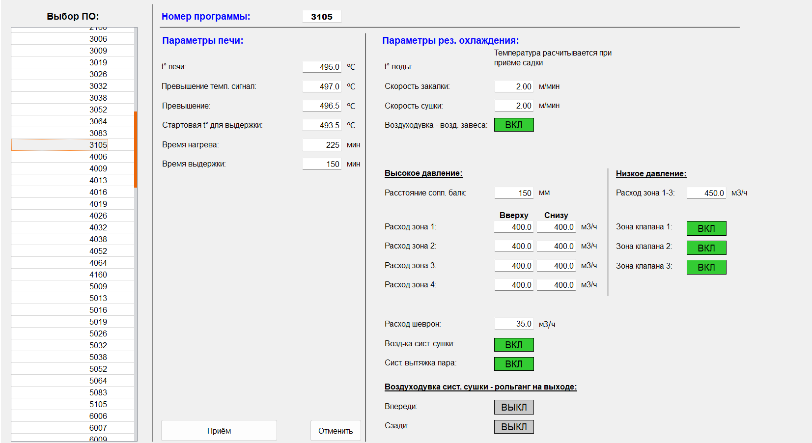 · управление основными технологическими параметрами печи на всех этапах обработки;
